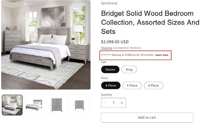 - Displaying the Synchrony Financing promotional message in both locations will maximize conversion.