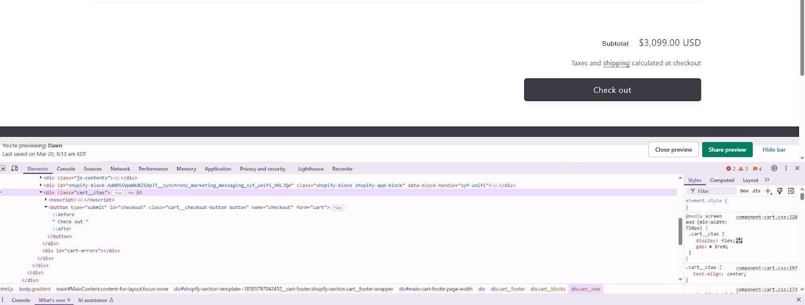 To enable the Synchrony Widget using App Blocks on your Cart page, first navigate to your Cart page within your Shopify Theme Editor.