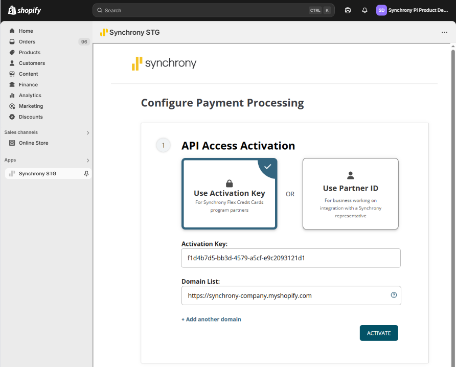 *Without an Activation Key, your Synchrony eCommerce integration will not work.