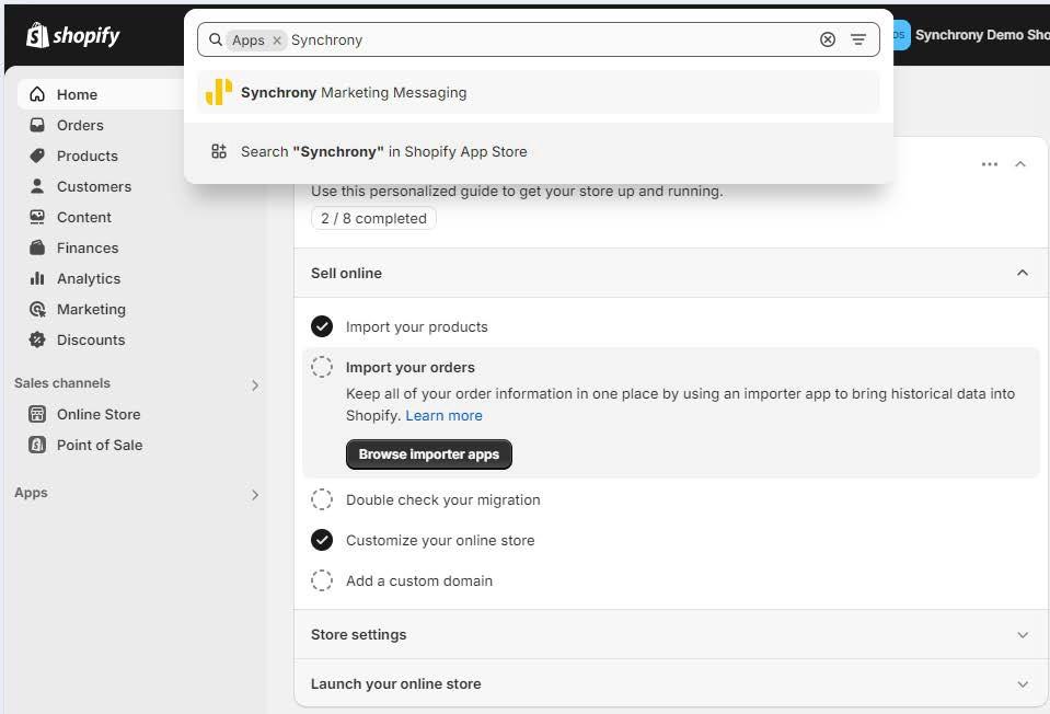 - Click Shopify App Store or go to https://apps.shopify.com/synchrony-marketing.