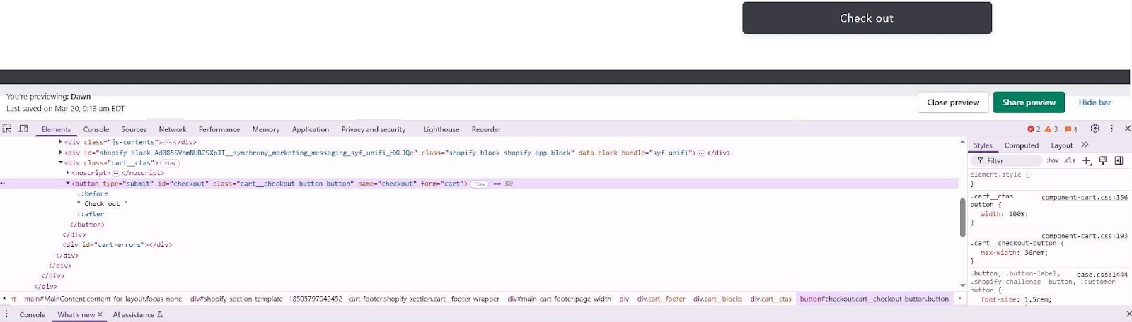 - Navigate to the Cart page or PDP