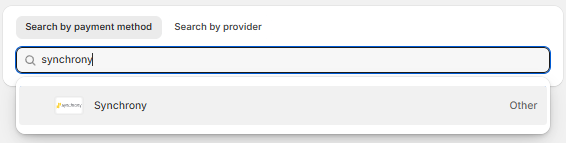 - Type 'Synchrony' in the search bar and select the Synchrony option.